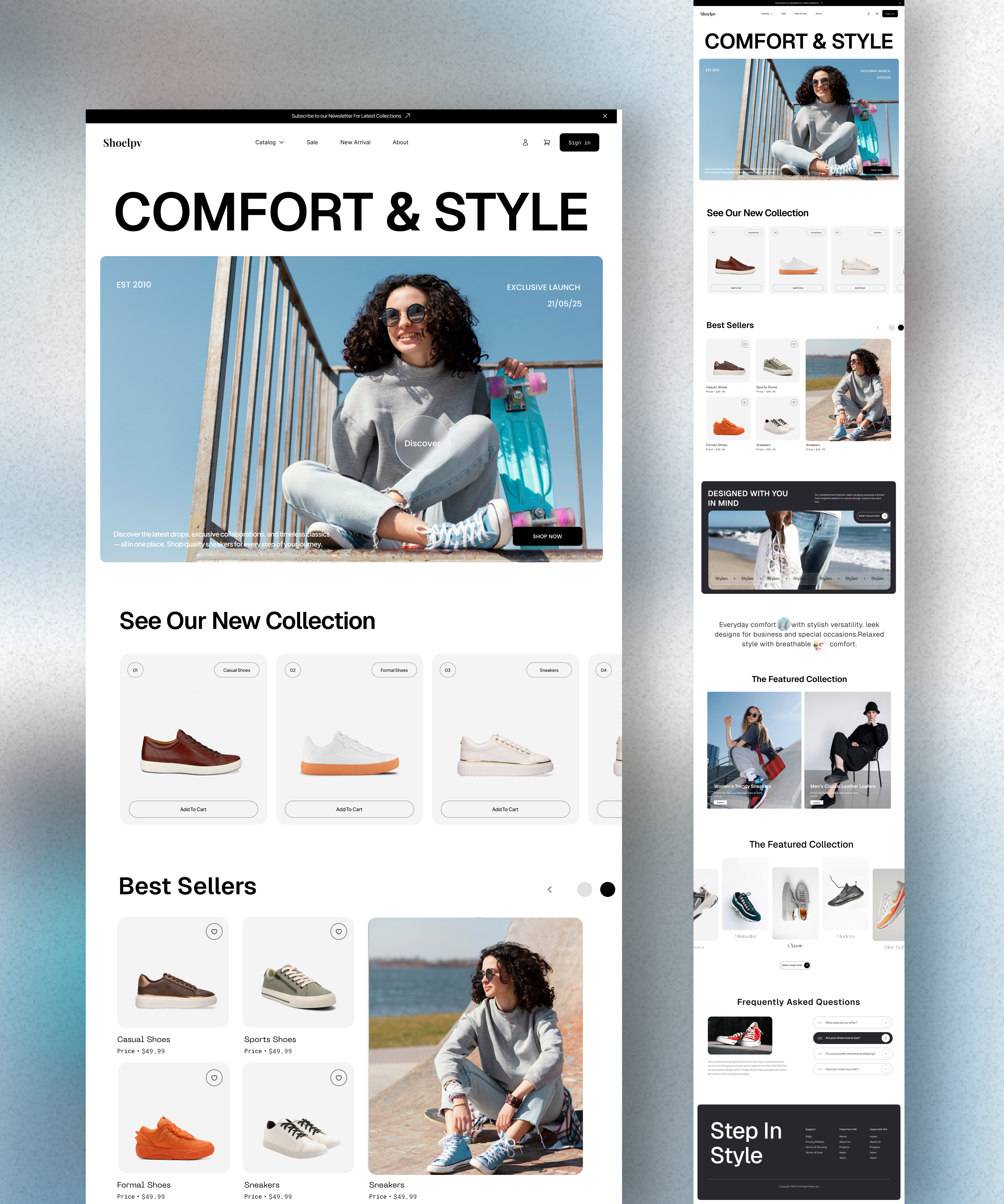 A beautiful landing page template designed for shoes and fashion shops to showcase their stunning products and tell their story online