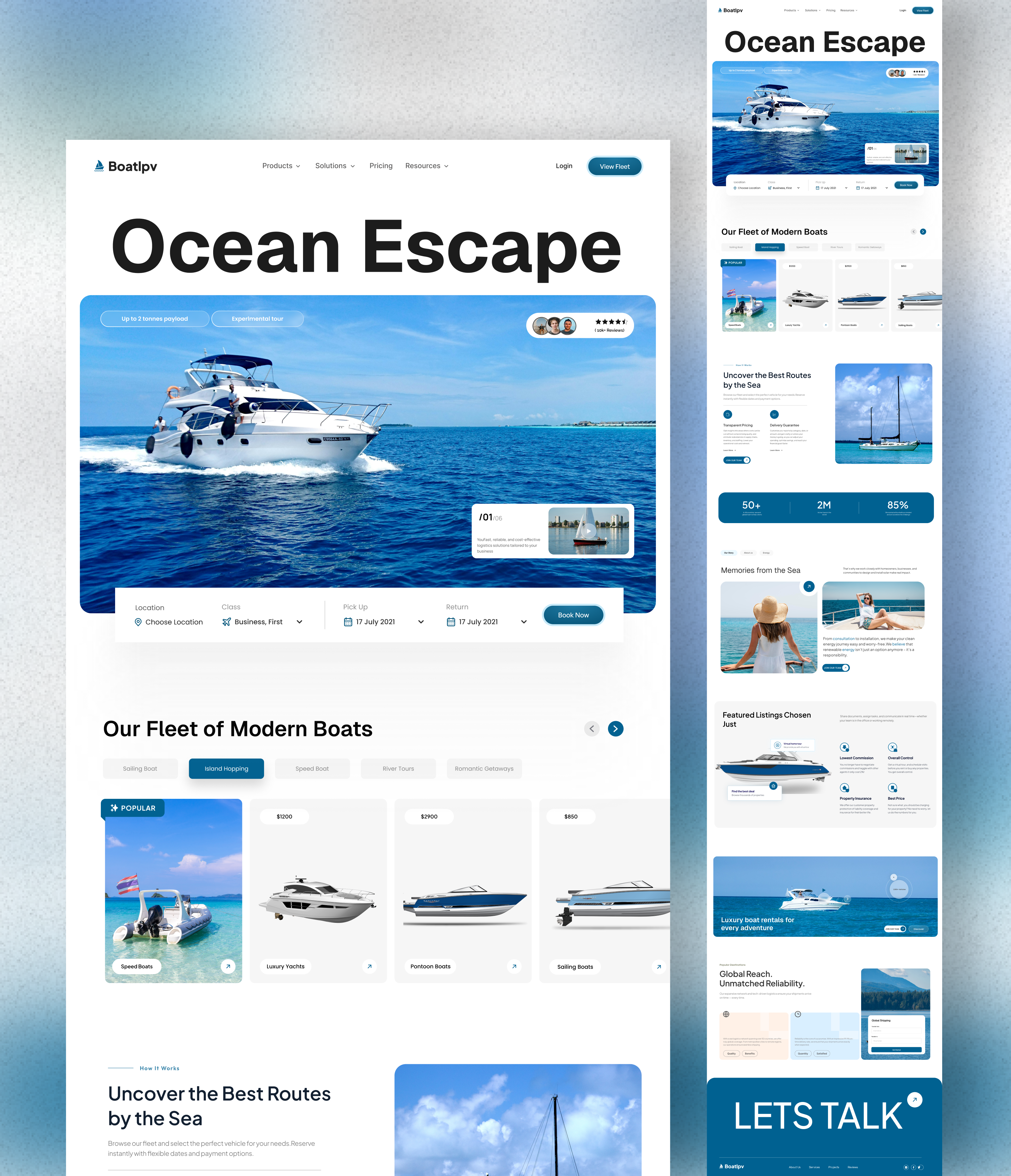 A beautiful landing page template designed for ship rental stores to showcase their stunning products and tell their story online